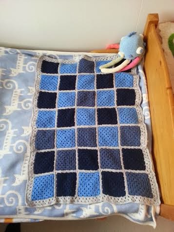 Lankavaraston kulutus on käynnistetty ja mikäpä muu olisi koukuttavampaa ja kaikki jämät sisäänsä nielevää kuin isoäidin neliöiden virkkaaminen.. Parahiksi sain kuulla että erään läheiseni veljen tytär saa keväällä pojan.. ja koska en itse sinisestä erityisemmin pidä päätin virkata lankavarastostani löytyneistä sinisistä villalangoista lämpimän vauvan peiton...